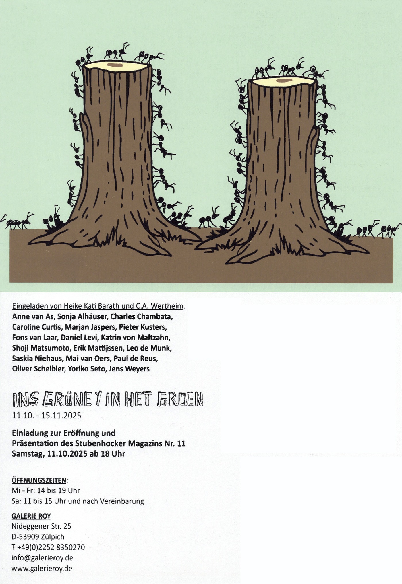 Stubenhocker is also the name of a series of exhibitions curated by Ineke Wertheim and Heike Kati Barath over the years at Galerie Roy in Zulpich, Germany.