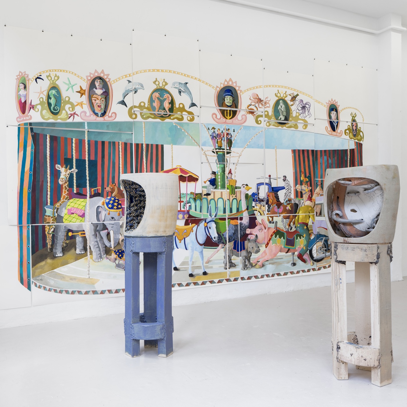 The works on paper by Erik Mattijssen and the ceramic sculptures by Tim Breukers are a happy marriage.